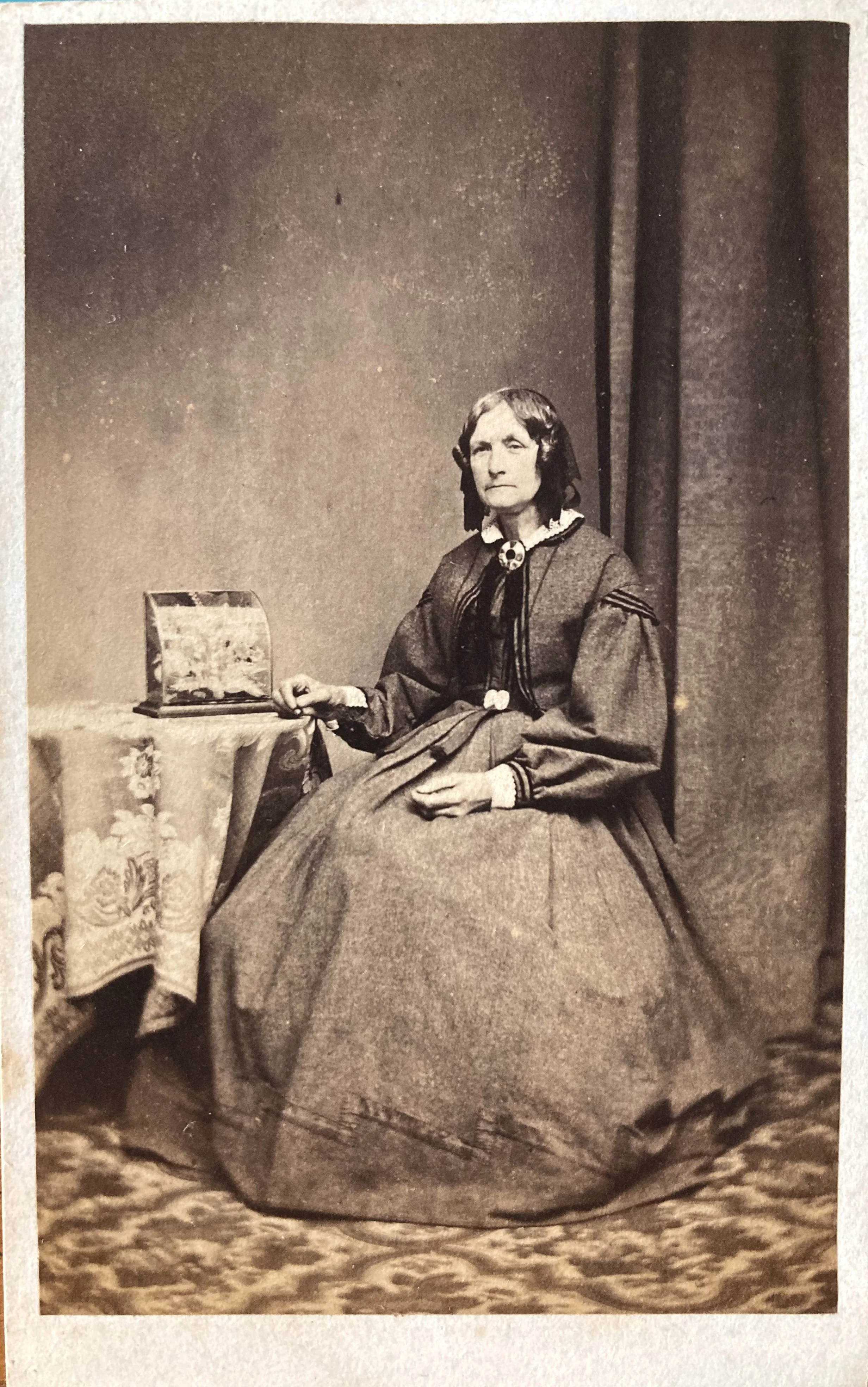 In the Victorian Age professional studio photographers would stage their portraits with various props such as wax flowers or taxidermy displays, as in these cartes de visite from my collection: